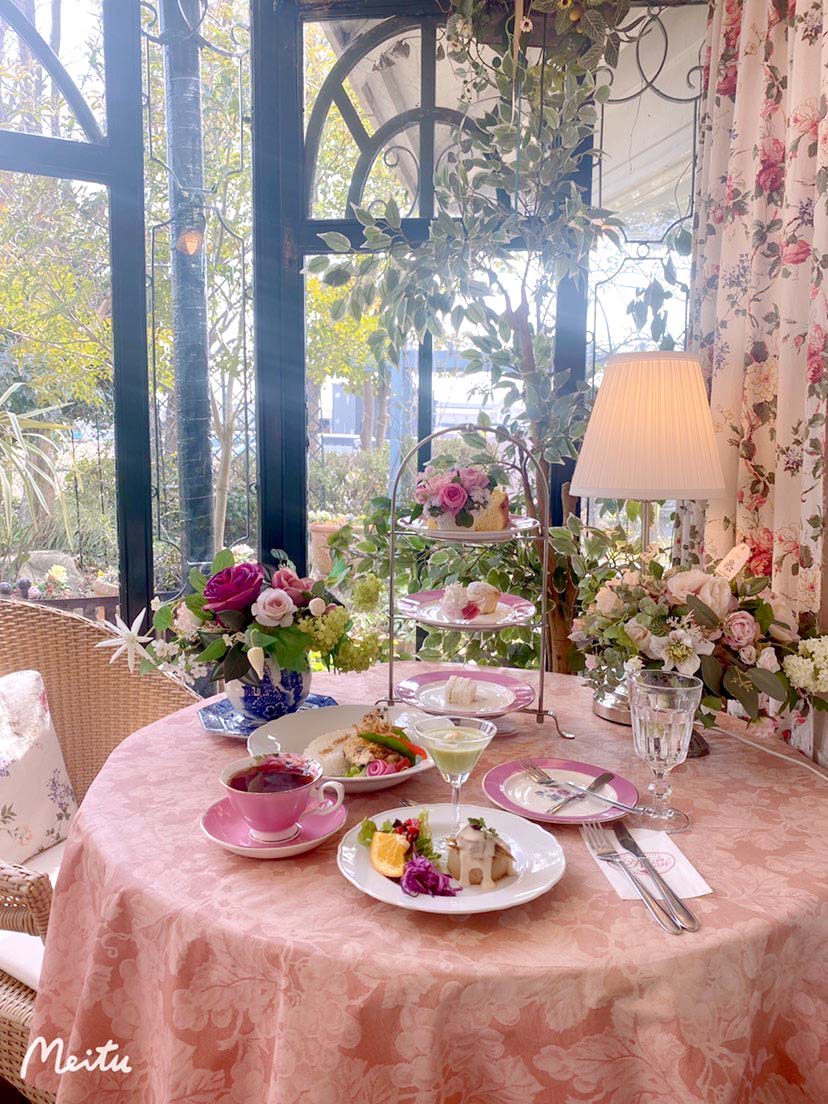 『アリスの茶屋』は、本来「気軽なお茶の場を提供したい」という思いから、オープンハウスで始まったお店です。『不思議の国のアリス』が店名の由来で、イギリス式のゆったりしたティータイムを過ごすことができます。格調高い家具やテーブル、調度品は自宅用として使っていた当時のものです。サロンで使用している食器類もオーナーが趣味で集めてきたものがほとんどです。今では、世界の20種ほどの紅茶を提供するほか、バラ柄の食器や雑貨なども販売しています。数年前には、優しい陽光に包まれるテラス席を増築し、さらにくつろぎの空間が広がりました。